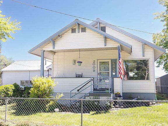 This 1920 Bungalow has a newer kitchen with custom Oregon Ash cabinets. Gas range and large island. Living and dining room have higher ceilings. Updated windows, wiring and plumbing. Basement has laundry, with a laundry shoot, storage, bathroom and office. Front porch and a fenced back yard with deck. Off street parking with RV sewer hookup. Garage, shop and storage buildings are accessed off of the alley way that does not go all the way through. North side yard has garden area, fenced and several fruit trees that have been grafted with different varieties of apples along with pear and an apricot tree. Large shop has been used for wood working, with additional storage in the attic. Bathroom and sink in shop has its own hot water tank. Work benches, wood stoveand 220. Great work area.