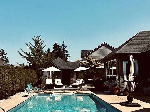Elegance and quality make this well-maintained home in popular Vine Meadows very desirable! This light and bright home features 5 bedrooms of which 2 are large primary spaces on the main floor. The living room has a coved, high ceiling, built-in cabinetry, and gas fireplace to gather on winter nights! The gourmet kitchen is an entertainer's dream featuring; granite countertops, stainless steel appliances, double oven, drawer microwave, and wine/beverage cooler installed in 2022. New 3rd-rack dishwasher in 2023 and many other updates. Newly refinished hardwoods & Mohawk Smart Strand carpet in 2024. New water heater in 2022. Plenty of rooms for an office, work out room, art studio or guest room. Step outside to Summer gatherings & enjoy the pool, two covered patios, and sun deck with new Trex decking in 2023. There is also a pool house with a full bathroom. Wetlands, Eco City Park, off-leash dog park, and Willamette Valley Country Club are all very close.