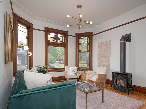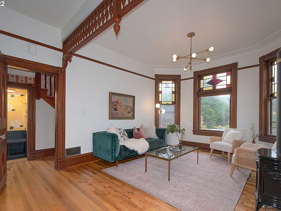 This Lovely Victorian has spendid Sunburst spindlework & Fishscale shingles outside & superb detailing inside. Hardwd flrs, stained glass windows, exquisite woodtrim, amazing ceiling height are balanced by an Updated Kitch w/Quartz c-tops & loads of cab space. One bedrm & .5 bath on main plus spacious Primary ensuite & 2nd bed up. Stunning primary bath has marble flrs, clawft tub & wlk-in shower. Bsmnt is plumbed for bath & kitch. Big Bkyrd w/green house. Blks to Trendy Dekum Triangle Hot Spots! [Home Energy Score = 4. HES Report at https://rpt.greenbuildingregistry.com/hes/OR10206570]