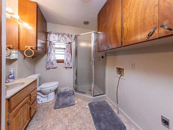 Bigger than it looks from the front, this home leaves a lot of room and space for its future! Extra large out building is heated and has compressor for shop or she-shed needs. Walk in to the large living room to the front of the house, large eat-in kitchen and dining area to the back of the house, and right on out to the screened in patio solarium. Two bedrooms are separated by the full size bathroom, and another full bath in the main floor laundry room is just beyond the kitchen. Basement finishes are waiting for your touches and host two more potential non-conforming bedrooms and entertainment space. Lot’s of runway here for the future when the right owners move right in and start making it their own!