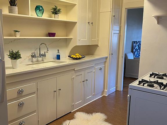 Walk out your own front door and be steps away from trendy 21st and 23rd Ave's, New Seasons grocery, boutiques, restaurants, coffee shops, and a short walk to the Pearl and Forest Park. It is one block from the trolley. This double studio apartments offers a wood accent wall and hardwood floors in living room and the additional room, Quartz kitchen counter top and backsplash, 7 sets of windows, gas oven, floor to ceiling kitchen cabinetry, a front door with porch, surrounded by a perennial garden. It also has a backdoor with a porch with a grass area and hops growing up a trellis. The basement area has laundry facilities included in the monthly charge.-no coins needed. Note: Square footage may differ based on measuring method used. No units are accessible dwelling units. 1 dwelling unit available. All units are double studio. Screening criteria required. 72 hour delay to show is to allow those with disabilities first opportunity as required by the City of Portland. Equal Housing Opportunity! There is a monthly bill back which includes in unit-water/hot water/sewer, common area utilities, garbage, laundry machines use, and yard care. Resident pays the units electric and gas monthly bill directly to utilities. Dog/cats spayed/neutered indoor only, under 10 lbs with a $250 deposit and $40 pet rent, maximum 2 pets. Offering 12 month lease options.