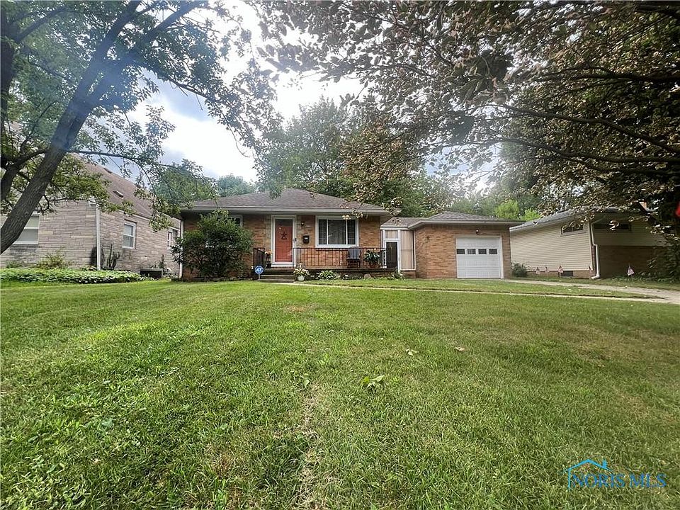 This charming 1 story brick home is ideal for those seeking a warm, cozy and inviting living space. 2 spacious bedrooms and an updated full bath all on the main floor. The full basement is partially finished for added versatility perfect for entertaining. The breezeway offers a delightful spot to relax and unwind and opens to the attached 1.5 car garage. Large fenced in back yard with small shed sized out-building that offers additional storage for all your lawn equipment and outdoor supplies. Conveniently located near dining, shopping, and the University of Toledo. Possession at closing.