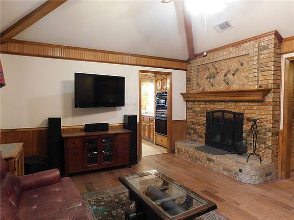 Charming and spacious one story in highly desirable Toler Bay. Hand scraped, engineered hardwood floors throughout all living areas. Large living room with see through fireplace to the 2nd living area featuring a full size wet bar. The kitchen features a brick alcove framing the cook top. Custom hardwood beading on breakfast nook and kitchen ceilings. Huge Master bedroom is complimented by an oversized master bath with jacuzzi tub, seperate shower plus his and her closets. Bedrooms are spacious with ample walk in closets. Sunroom leads to patio with pergola covering and beautifully landscaped, low maintenace backyard. The garage is amazing! It features an acrylic floor, insulated garage door and its own AC.