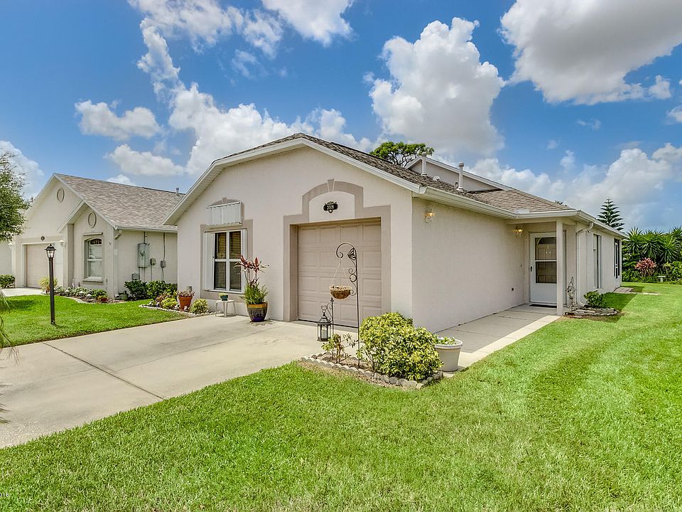 This 3 bedroom 2 bath home is adorable. Located at the front of the neighborhood for easy access in and out and across the street from the community pool. Fridge and stove are both 2-3 years old. Awesome floor plan makes the home feel open and roomy. Large Florida Room type patio with vinyl sliding screen windows. Backed up to the preserve.