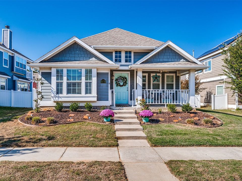 Conveniently located in Providence Village, this cozy & well-organized cape cod-style home is designed for comfort & functionality. The open concept 2 bed 2 bath floorplan offers efficient use of space, abundance of natural light, & is a short walk to numerous neighborhood parks including Rodgers Park, Eagle Field, Monaco Elementary, Central Bark Dog Park, Pond Park, community pool, playground, & skatepark. Kitchen comes well equipped with gas stove, ss appliances, refrigerator, subway tile backsplash, tons of counter space, newly painted cabinets, island, updated countertops, & bar niche area. The oversized living room features a gas fireplace & designated sun space ideal for indoor plants. Primary bed & bath are a generous size with garden tub, seperate shower, & walk in closet. Extended decking in attic provides extra storage. Washer, dryer, garage shelving, both refrigerators, security cameras, curtains, TV mounts all stay! Less than 20 minutes from PGA HQ & Dallas North Tollway.