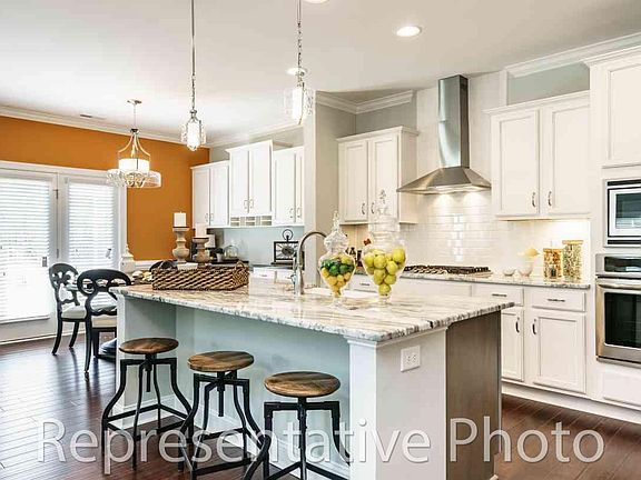 The Hickory plan with 4 bedrooms, 3.5 baths, formal dining room and a 3 car garage. This home has everything! Large covered and rear porches built on a brick stem wall with cement fiber board siding and 30 year architectural shingles. The design team has added the following features to this home: Drop zone by the back door and work zone in the laundry room. Gourmet kitchen with White cabinets, double ovens with gas cook top. Upgraded cabinet hardware whole house. Upgraded back splash and Quartz counter top in the Kitchen. Cabinets in the laundry area. Butler's pantry leading into the dining room. Single bowl farm sink. Brushed nickel lighting and plumbing fixtures. Oak treads with spindles on the stair case. 7.5" laminate plank flooring in the down stairs living area. Various additional lighting and electrical have been added. The secondary baths all have Venetian marble with square sinks. Our homes come with full landscaping, irrigation and gutters. Too many features to list. Indigo Bay is a gated, natural gas community located on 212 acres and wrapped around a 56 acre lake. There is a 9 foot sidewalk planned to go around the entire property. The club house has a pool, fitness center, meeting space, outdoor area and we even have a dog park. Low HOA dues. Living at Indigo Bay you can enjoy the sights and sounds of nature and have the ability to Kayak, canoe, or fish in our lake. A must see. “Photos are of a similar Hickory home. (Home and community information, including pricing, included features, terms, availability and amenities, are subject to change prior to sale at any time without notice or obligation. Square footage's are approximate. Pictures, photographs, colors, features, and sizes are for illustration purposes only and will vary from the homes as built.)