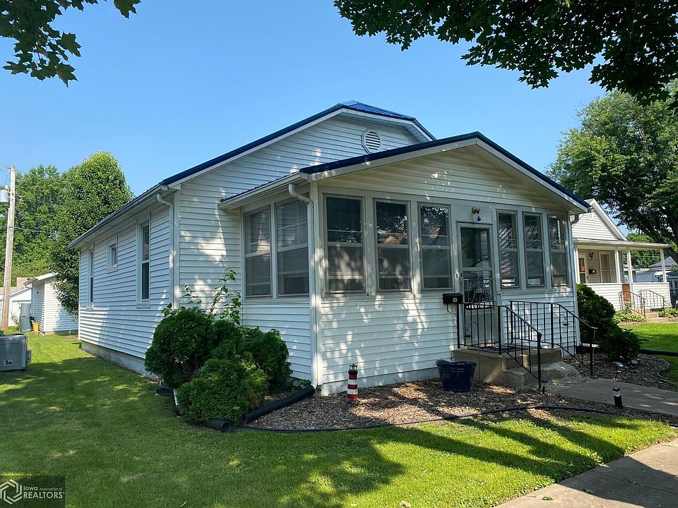 Super cute 2 bedroom/1 bathroom home. Lots of upgrades include: metal roof (2018), windows (2017), furnace and central air (2019), and an on-demand water heater (2021). Interior has been repainted. One car detached garage with automatic door and new gutters. Enclosed front and back porches. Located on a flat lot. Basement is newly insulated. Washer/ dryer and deep freeze are included.