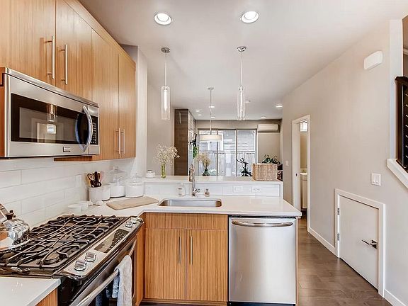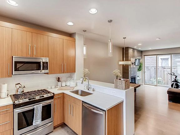Beautiful, modern, like new, two-story townhouse. Two bedroom, two and 1/2 baths in the best location! Hardwood floors throughout main living space with a cozy gas fireplace and high ceilings. Kitchen has quartz countertops, stainless steel appliances, and gas stove. Upstairs you'll find both bedrooms with en suite bathrooms. Laundry is also upstairs. Nice, fenced patio outside for coffee in the morning and for pets. Covered/Locked bike storage/extra storage outside by recycling. 95% walk score, 100% bike score and close to freeway or bus transit. Colonel Summers Park across the street for tennis, basketball, frisbee or walks. Also walk to some of Portland's best Restaurants!