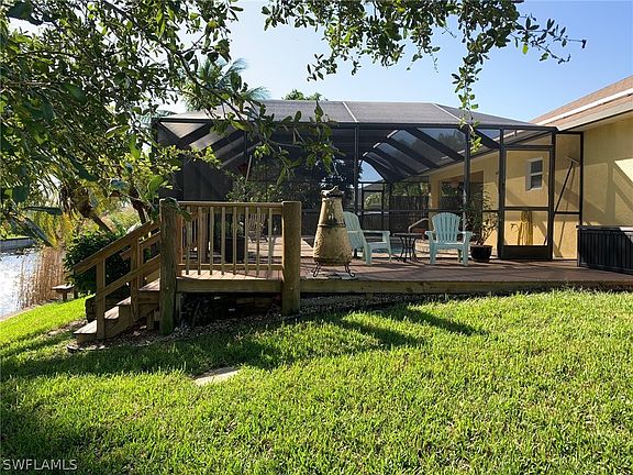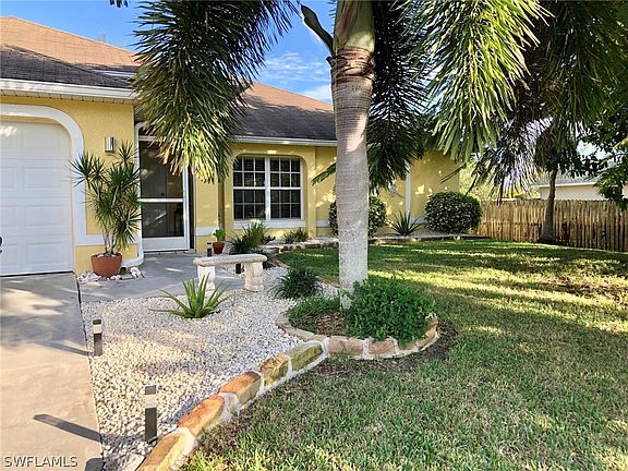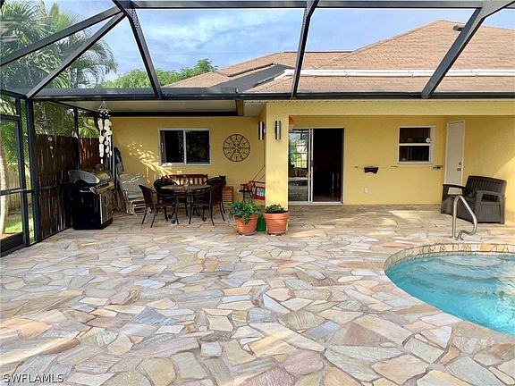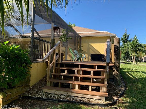 Pool Home in SW Cape Coral, central Location, no flood zone. NEW ROOF 2023. A meticulous maintained pool home with large screened Lanai. Walking Distance to Palmetto Golf course. Upgraded in 2012 with new Waterlines and Electric. Attic is also foam insulated to save electricity. Large open kitchen with Island, Stainless steel appliances and engineered Stone counter top. A split bedroom ranch home, 2 full bathrooms one connected to Lanai/Pool. Master-bedroom with office space. Walkin closets and a lot of additional storage room in the hallway. Laundry inside the Residence. 2 Car Garage. Nice Yard, clean set up with 3 Fruit Trees.