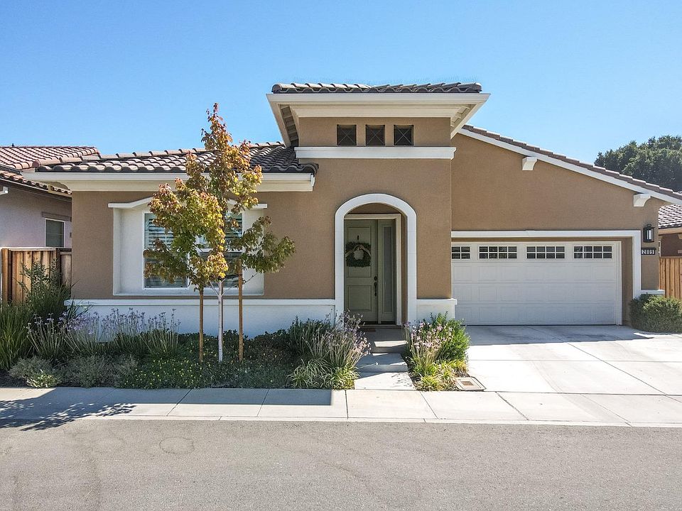 Gorgeous 55+ new build community in the heart of Hollister, Built in 2021. This home boasts an open concept floor plan, upgraded quartz throughout, solar included, vinyl shutters on every window, and Electric Car charging station in the garage! Home appliances included in purchase, which include exterior natural gas BBQ as well! This beautiful community offers a crystal clear pool, pickleball courts, full gym, bocce ball and planned monthly activities! Enjoy watching the sunsets over the stunning Hollister Hills.
