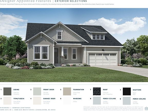 Planned completion in July! Located on James Island, Riverbend is a boutique new home community featuring waterfront living amongst grand oak trees and deep-water access via a community dock to the Stono River. This Bowman plan features a very large, private homesite with a screened porch, first floor study, and two generous secondary bedrooms. The first floor oversized primary suite is complete with gorgeous tray ceiling, a luxurious bathroom, generous closet space that connects to the laundry room. The 2nd floor bonus space includes a living space, full bathroom and large bedroom. High-end, designer curated features & finishes abound to make this beautiful new home truly unique. Closing costs incentives are available!