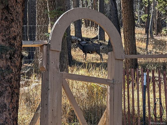 Traditional A-frame cabin on 2 lots, comprising nearly 11-acres of privacy and seclusion in gated Forbes Park. Cabin comes furnished, along with lots of tools, and enough cut and split firewood for at least 2 years! The cabin is tied to electricity, and features a wood-burning stove, 2 high-efficiency ETS heaters, propane, and a bonus Generac generator in case of the occasional power outage. A 200' well supplies the cabin with delicious, ice-cold drinking water. TWO freshwater springs on the property flow year-round, attracting wildlife. Gaze upon Mathilde Lake in the large meadow below and see 200+ elk herd frequently meander through. This is a Certified Wildlife Habitat at 9,800ft with only Greenbelt to the rear to hike and roam freely. The large ground-level basement with separate entrance could be modified for numerous possibilities. A fenced yard keeps your canines close, and a BBQ area provides outdoor dining for you and your friends. FOUR outbuildings house your mountain toys and tools - with all of the items shown already included! On this quiet road, you'll have only the sound of the wind in the trees, elk bugling, birds chirping. Detach from the city life while staying connected with high-speed fiber-optic internet while working from home. Enjoy the simple mountain lifestyle with the security of this gated community providing comfort and peace of mind. Your neighbors are generations of deer, elk, bear, wild turkeys, coyotes, etc. and many varieties of birds, for a true mountain living experience in perfect harmony with nature. Low annual dues include year-round road maintenance / snow removal (once cabin is occupied or with 5-days notice of your arrival), a dumpster at the front gate for household trash, a shed for FedEx/UPS delivery, gated security, use of the Forbes Park Community Center, and private access only 5.7 miles from the cabin to the San Isabel National Forest for hunting and exploring.