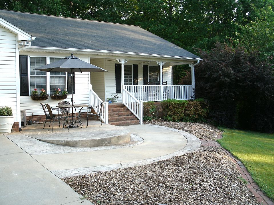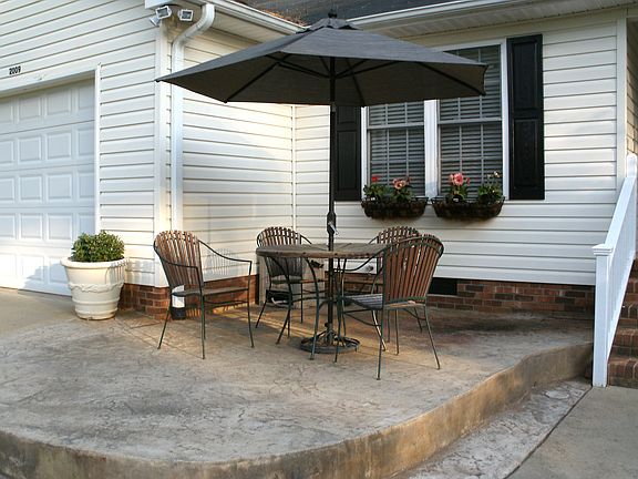 Cul-de-sac lot, with an ideal private backyard! Complete w/ deck, outdoor brick fireplace on brick pavers, swing set/sand box - all secluded! In the front, this hm features a spacious front porch & front patio area. Inside is a very open floor plan of dining room, living room, kitchen. Large MBR w/walk in closet. All furniture is negotiable. Kitchen is highlighted by beautiful dark granite countertops & attractive tile backsplash. Recent carpet(2012) throughout home. Great one level living! Home Warranty