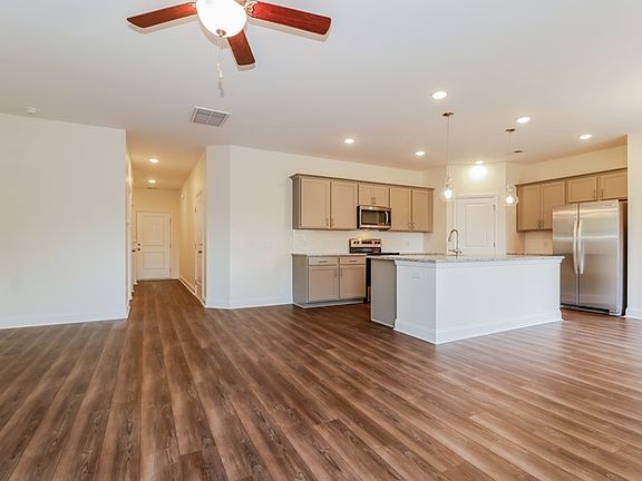 Step inside and be greeted by a bright and inviting living area that flows effortlessly into a gourmet kitchen. With an extra-large island, ample counter space, and abundant cabinetry, this kitchen is ideal for entertaining guests or preparing meals with ease. Sleek modern appliances complete this highly functional and stylish space.