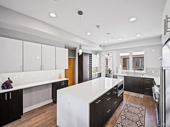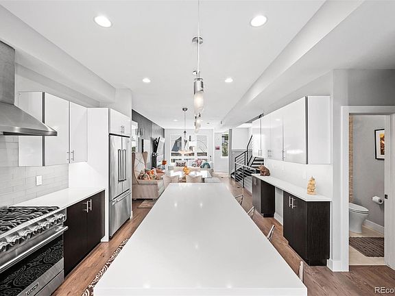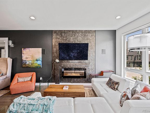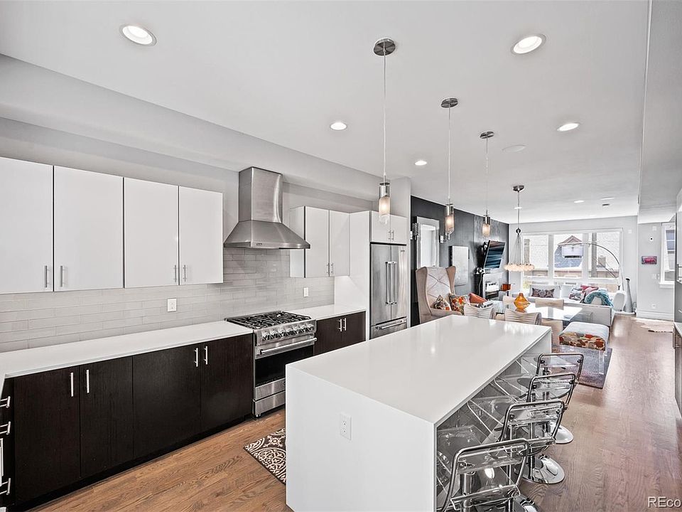 **Buyer's financing fell, back on the market**This gorgeous South facing home boasts a modern and functional layout, light & bright, perfect for everyday entertainment on a small or large scale with the bright kitchen, wide living room with modern fireplace, and bonus nook area. The sleek kitchen is one to impress with all the high-end finishes, Viking appliances and generous waterfall countertop island with seating for six! The second floor features the master suite with a walk-in closet and spa-like five-piece master bath. Invite guests up to the highly upgraded full rooftop deck with stunning city views and almost 600 sqft of deck-- truly one of the best in the neighborhood. The ground level features a flex space perfect for your home office or gym, and the attached two-car garage. Tons of upgrades including, waterfall countertop, hardwood flooring throughout, deck expansion with gas fire pit installation, first level reconfiguration, custom storage, electric blinds, security system (owned not leased), entire home surround sound and more! Access to I-25, Highlands, RINO & downtown couldn't be easier-- you'll find dozens of breweries, coffee shops, restaurants, along with REI, Jeff Park, and biking trails, all right outside your door!