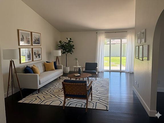 Charming 3 bedroom, 2 bath house with a large yard and mature plants and trees. New windows, freshly painted throughout, updated bathrooms and kitchen. Includes all appliances and a 2 car garage. Quiet street. Centrally located and near the freeway. Pets welcome. Owner maintains yard. Tenant agrees to run sprinklers (frequency based on time of year). No smoking inside the house.