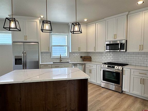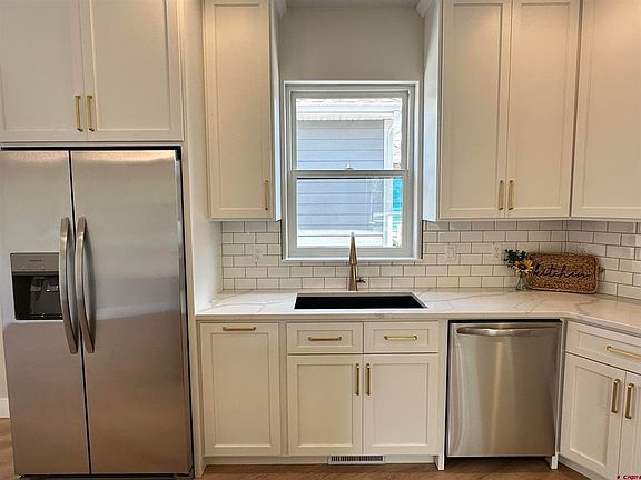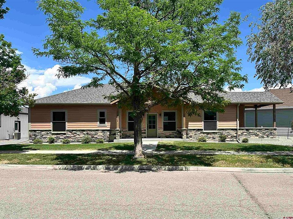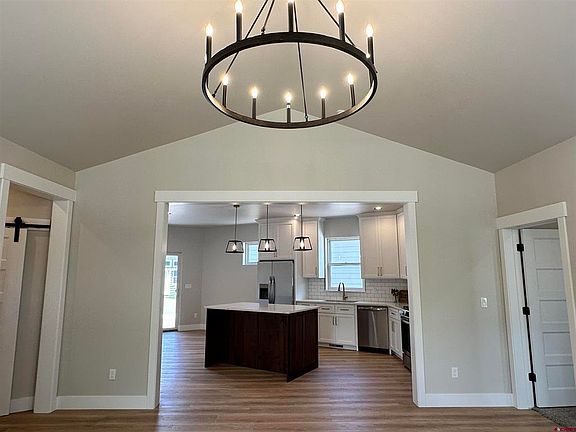 Here it is, the last of its kind! Welcome home to a beautiful new home built by the incomparable Chris Sjoden! Located in The Villas at Sunrise Creek, this delightful lock-and-leave style home features top-notch finishes throughout. The covered front porch welcomes you into a spacious living room with a vaulted ceiling accented with a magnificent lighting fixture. Designer finishes complete the kitchen with quartz countertops, subway tile backsplash, stainless steel appliances and custom crafted cabinets. The kitchen island and laundry room cabinets are cherry wood and the other cabinets throughout the house are maple with a painted white finish. Enjoy low maintenance luxury vinyl proof flooring throughout the communal living spaces with plush carpeting in the bedrooms. This split, two bedroom, two bath floor plan has no wasted space and terrific storage. The bathrooms are finished with exquisite lighting and fixtures with each one having an enormous fully tiled walk-in shower. Both bedrooms offer walk-in closets and are accented with a tray ceiling complete with ceiling fans for added comfort. The master bedroom features a quaint, private covered patio with peek-a-boo views of the surrounding mountains. Off of the dining area is a back patio with a gas stub for your BBQ. This home is complete with front yard landscaping that's watered and maintained by the HOA. The HOA is also responsible for snow removal, making this carefree living in the heart of Montrose.
