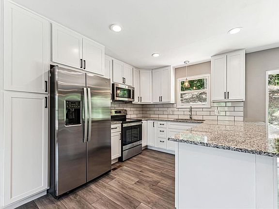 This BEAUTIFUL RENOVATION features 4 bedrooms, 2 full baths and GORGEOUS KITCHEN - including custom cabinetry with granite countertops, breakfast bar which offers ample space for counter stools, stainless steel appliances and a timeless back splash. Main floor offers gorgeous and durable vinyl plank flooring, beautifully updated bathroom and craftsman finishes throughout. You will find three bedrooms and full bath including master suite located on the main floor. The lower level offers an additional bedroom and full bath as well as excellent additional living & entertaining space in the beautifully finished lower level. Nestled on a quiet lot that backs to trees with a beautiful low profile deck with privacy wall. You will love this TURNKEY MASTERPIECE with SUPERB CRAFTSMANSHIP that shines throughout!!