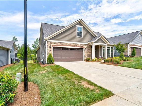 Gorgeous 1.5 story ranch w/bonus living suite upstairs in the sought after Courtyards at Wesley Chapel! Beautiful fixtures from Lee Lighting throughout, & custom shutters and blinds. Living Room with quartz covered shelving on either side of the fireplace, & ship lap accent wall. Deluxe Kitchen featuring SS appliances, gas range, pull out pantry drawers, soft close doors on island, farmhouse sink, & white cabinets & quartz. Sunroom also with shiplap accent wall & glass double door entry; could be perfect for an office. Laundry room with soft close cabinets, utility sink, & quartz counter. Primary bedroom with custom shelving in large walk-in closet.Custom framing around mirrors in both downstairs bathrooms. Enjoy your morning coffee in your screened porch, accessed through French doors in master, right next to your private courtyard. Artificial Turf outback for a maintenance free yard! 55+ neighborhood features pool, walking trails, tennis, & excellent location off Cuthbertson Rd.