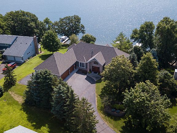 Beautiful Walkout Rambler with outstanding lakeshore and view on Lake Pulaski (main bay). The home has 4BR 4BA plus Den with a 6 Car Spancrete Garage and 110 Feet of Lake Shore. New siding, roof, mechanicals and more in the last 8 years. Open floor plan with dramatic vaulted spaces and walls of windows to enjoy the lake views. The 6 car garage is a dream with 3 stalls up and 3 down, Plenty of storage here. Enjoy the 4 season porch, deck, patio and the fabulous lake shore. See it today!