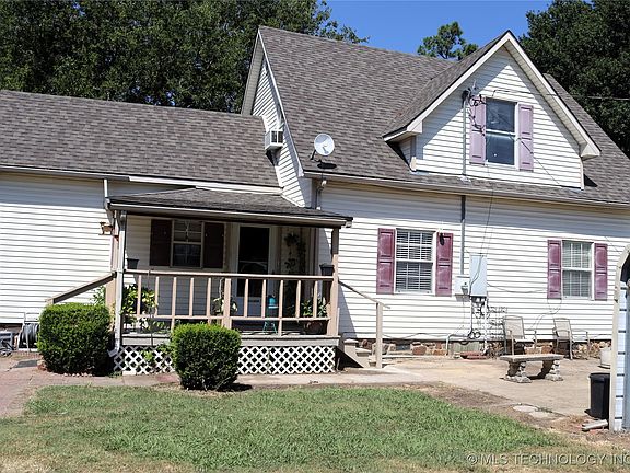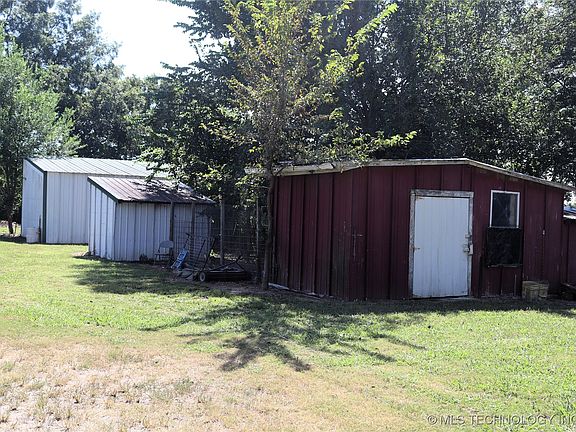 Exceptional farmhouse on a 5 acre corner tract, featuring an impressive array of amenities. 30x40 shop, 20x40 pole barn, large metal blg w chicken pen, large storage bldg. The property has paved county rd frontage on two sides with custom steel entries. Picturesque setting with a pond and mature pecan and pine trees. 3 spacious bedrooms, beautiful hardwood floors, 1.5 baths, 2 living areas, Engery efficient wood stove, large covered front porch that's complete w a porch swing. Prime location between two lakes and public hunting. 7 miles to Okmulgee..makes this home the ultimate retreat. Wilson schools, pso electric, rural natural gas and water. Built in 1930 and meticulously updated but retains the farmhouse original charm.