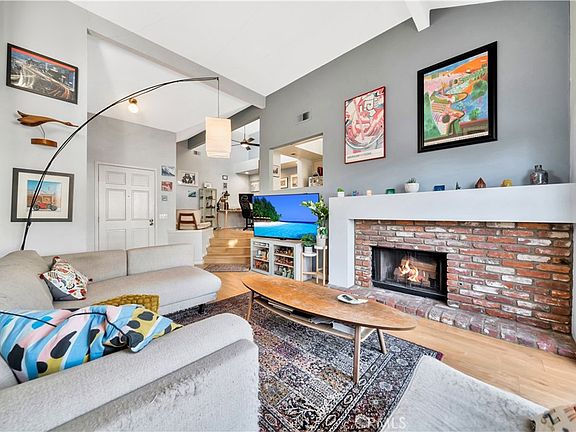 Presenting a refined haven just a stone's throw from the beach! Step into this captivating top-floor 1 bed, 1 bath condo nestled in the prestigious Seabridge community. Upon entering, embrace the expansive layout adorned with sleek wood floors throughout. The living space boasts a charming brick fireplace and extends seamlessly to a generous deck with storage, offering picturesque views of water features and greenery. The kitchen showcases stainless steel appliances, tile countertops, and classic cabinetry, providing a versatile space for culinary endeavors. The primary suite offers ample room and a flexible nook, while the bathroom features modern amenities including a dual-sink vanity and tile flooring. Additional highlights include a formal dining area, in-unit laundry, and new carpet in the bedroom. This unit includes an oversized 1-car garage and easy access to abundant community parking.Enjoy access to the array of luxurious amenities Seabridge offers: four pools, spas, a sauna, tennis courts, green belts, racquetball, onsite security, and beautifully maintained landscaping. The HOA covers water, trash, sewage, guard gate, and security. Seize this incredible chance to own a prime location within the city of Huntington Beach!