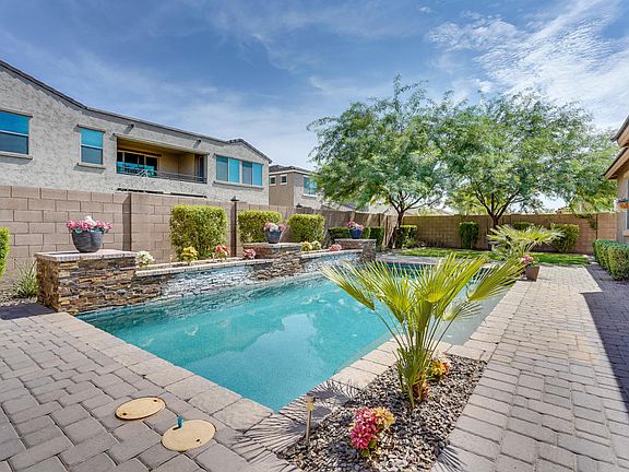 Amazing Spanish style home built in 2015 with 2 Masters, over 2800 sqft of living space and swimming pool! Upon entry the front yard is beautifully landscaped with pavers all the way to front door. Tiled entry flows through into the great room. Formal dining has access to Kitchen with upgraded cabinets, large center island, granite counters and stainless steel appliances. Private nook off the laundry room with built in cabinets and desk sitting. All bedrooms equipped with ceiling fans and light fixtures. The Master offers en suite with 2 separate vanities, walk-in closet and separate shower/tub. A secondary bedroom includes an ensuite with dual sinks and step-in shower. Private backyard with covered patio overlooks the stunning swimming pool and nicely landscaped yard! Come see this today!