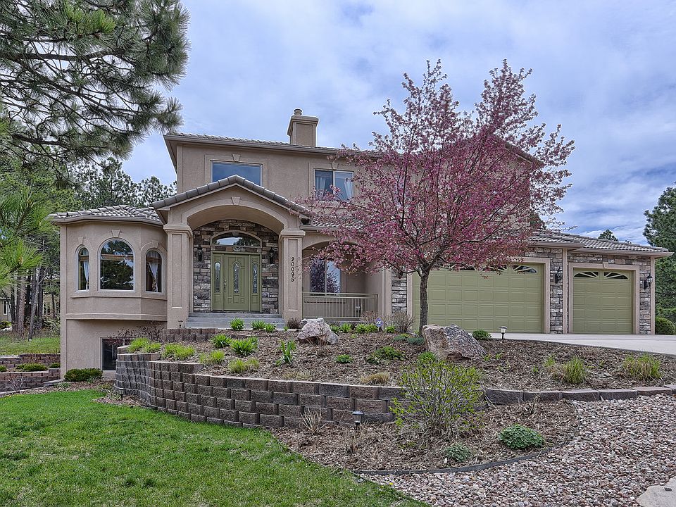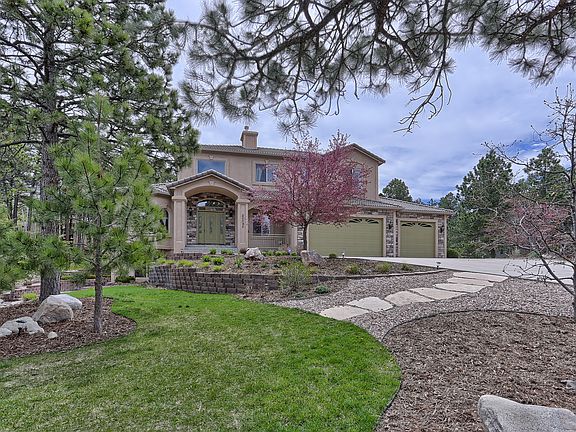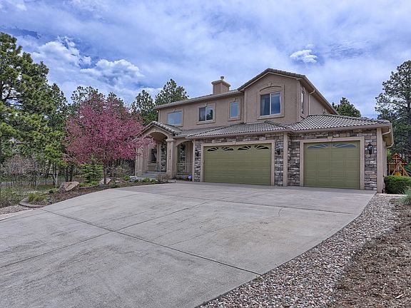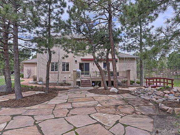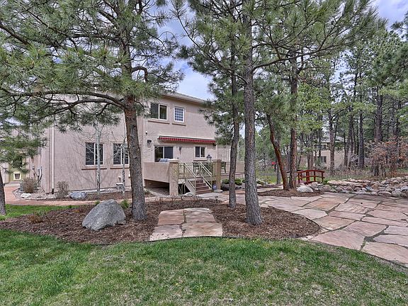 Experience the best Colorado has to offer with this spectacular custom home. Perfectly nestled on over an 1/2 acre lot surrounded by towering pines, providing the ultimate in serenity. With easy access to Hwy 83 & I-25 making for an easy commute to both Denver and Colorado Springs, this beautiful home offers convenience and seclusion in the gorgeous forest setting of the Woodmoor Vista community. Complimenting this forest retreat is a warm and inviting floor plan, where comfort meets functionality. The spacious layout offers 5 bedrooms; 4 bedrooms on same level, 4 bathrooms, 3 car garage and a finished walkout basement, providing ideal usability to fit all of your needs. Upon arrival, a covered front entry leads you inside where you are greeted by a beautiful winding staircase, tile floors that extend throughout most of the main level matched with elegant archways creating open spaces between each room. The dramatic entry leads to a private office surrounded by views of towering trees and opens to the formal dining room with 10’ ceilings, creating the ideal space for formal entertaining. Continue on to the gourmet kitchen, which features stainless steel Kenmore appliances with a cabinet panel refrigerator, 5 burner gas range, a stand alone center island with raised breakfast bar, large walk-in pantry, bill nook, 42” inch cabinets with crown molding and slab granite counters meeting all your culinary needs. This magnificent kitchen also boasts a large breakfast nook that walks out to the spacious Trex deck with retractable awning and overlooks multiple entertaining areas and the forest setting making it perfect to entertain family and friends. Back inside and is the great room, which boasts a cozy gas log fireplace, highlighted by wall to wall stone surround. Escape to the spacious master retreat complete with 9’ ceilings, large walk-in closet and a luxurious 5pc master bath, with tile floors, dual vanities, large jetted tub and oversized stand alone shower. Across the catwalk are three more spacious bedrooms, two of the bedroom share a Jack-n-Jill bathroom and boast mountain views. Follow the stairs down to the finished walk-out basement which is an entertainer’s dream, boasting 9 foot ceilings, a recreational room with ample space for a gaming table, wet bar and family room with built-ins and a gas log fireplace with stone surround. The recreation area is complimented by the impressive wet bar with wine rack, and room for full mini fridge, which is sure to make you the envy of your family and friends! Summer barbecues will be a delight on the lower patio as you are pleasantly reminded as to why you call Colorado home while you watch the wildlife, smell the pines and listen to the wind rustle through the trees! All this, along with nearby parks, D-38 Schools, and trails awaits you in this perfectly crafted dream home! Please visit www.laurakaan.com for more information on this home.