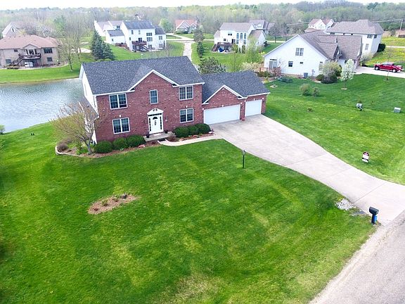 Custom built home on the lake. Enjoy waterfront fishing for blue gill, catfish and bass! Beautiful setting with walkout to the water from finished basement with wet bar. Award winning Tri-Valley school district, yet just 10 minutes from State Farm and amenities! Enjoy your morning coffee from the sunroom. Granite countertops, nine foot ceilings including basement, see through fireplace, oversize garage, five bedrooms and two full/two half baths on over a half acre lot. Use of the beach on the south pond, in walking distance from your home. A rare beauty that you will love calling your home!