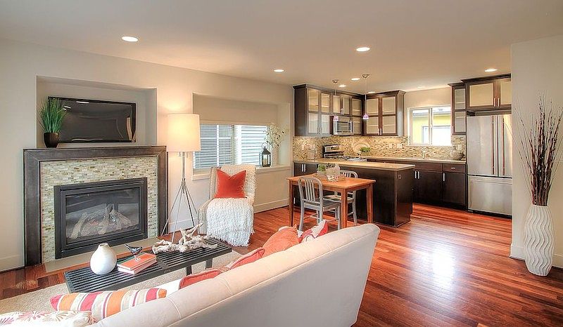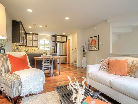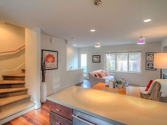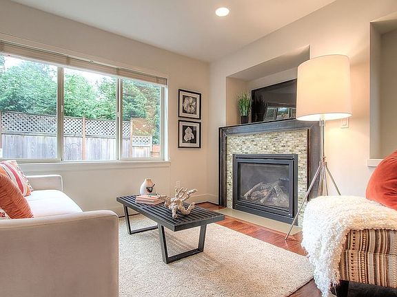 Modern & stylish townhome in the heart of Fremont! Great walkable location. Dark stained Brazilian Walnut hardwood flooring throughout main floor. Steel mantle gas fireplace with an entertainment alcove above. Gourmet kitchen is a chef's delight w/quality cabinets, reeded glass inlay, stainless steel appliances & slab countertops. Upper level has 2 beds, full bath, and full sized H/E washer/dryer. Private fenced backyard. No HOA dues, zero lot line single family.