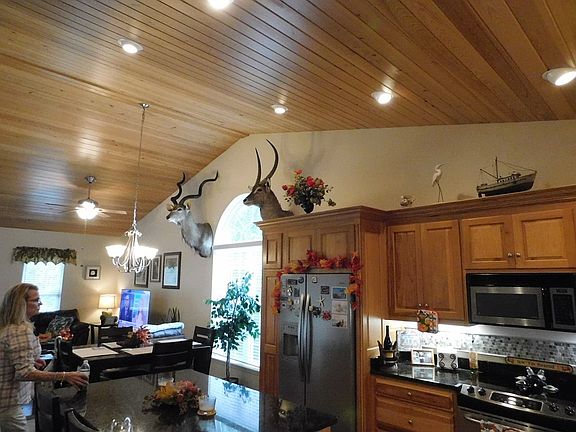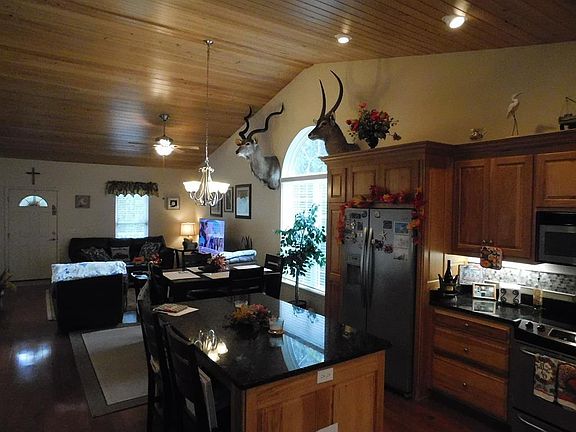 - Interior Features: Blinds, Breakfast Bar, Open Floor Plan, Wood Cabinets, Ceiling Fans, Decorative Lights