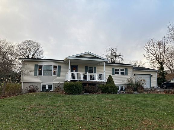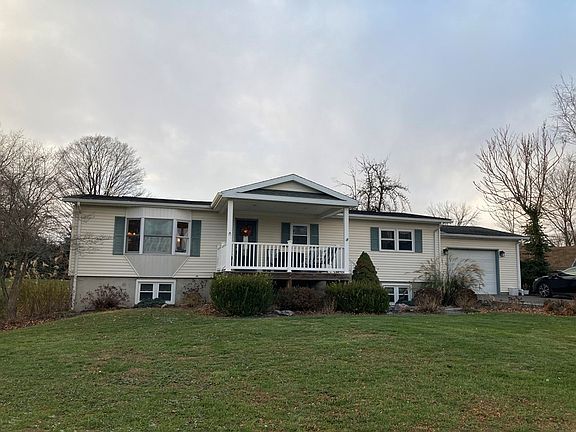 Raised Ranch; this 5 bedroom 2 bath home; features 3 bedrooms and a full bath on main level, hardwood floors, kitchen with maple cupboards and island as part of the open floor plan; large family room with sliding glass doors looking out onto large back yard; oak cupboards in bathroom, screened in back porch has hot tub; downstairs in a finished walk out basement; 2 bedrooms, full bath; large family room and eating area; laundry room and utility room.