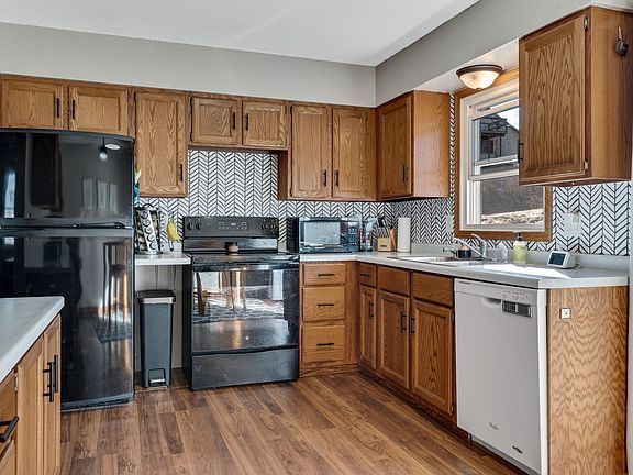 Nestled in a desirable neighborhood, this well maintained split-level home offers comfortable living & modern updates. With 3 bedrooms & 2 bathrooms, this residence features a spacious layout with a large recreational room on the lower level, ideal for gatherings. The spacious, updated eat-in kitchen opens to a new deck through patio doors, overlooking the expansive backyard, perfect for outdoor entertaining. Natural light streams through numerous windows, highlighting the beauty of the surrounding property. Additionally, enjoy the convenience of a large detached garage and the proximity to a nearby park. This home is a rare find, blending charm with contemporary amenities, such as new flooring, many updates,including added bath, new furnace & water softener in 2021, plus so much more!