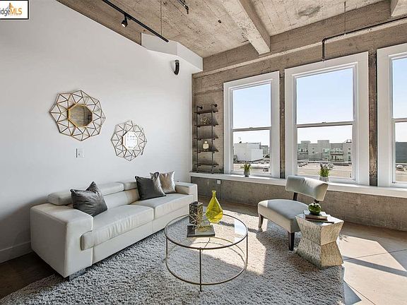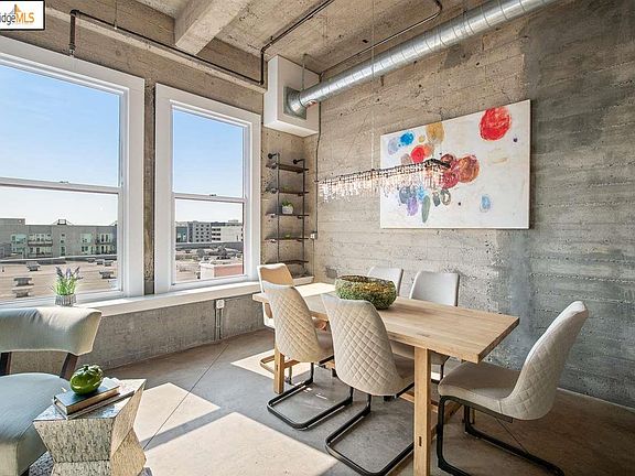 Authentic live/work loft in the heart of Jack London warehouse district at New Market Lofts, the former Safeway Headquarters. The epitome of industrial chic, the high ceilings and polished concrete floors are paired with modern finishes to create a unique live/work environment. The open floor plan featuring A recently renovated chef's kitchen, with all new cabinets, stainless top of the line appliances, quartz countertop and breakfast bar, is perfect for work or entertaining. Elevated bedroom has a large walk in closet and leads to the split bathroom with two sinks and vanities. New LG washer/dryer combo is located in laundry closet. Abundant sunlight with the 5th floor western exposure. Garage parking for one car but why drive when commuting is a snap with close by BART, AC Transit, Broadway shuttle, Amtrak and Ferry to SF. With a myriad of trendy cafes, eateries, and breweries/wineries all near nearby, this unit is the perfect home for those seeking comfort and convenience.