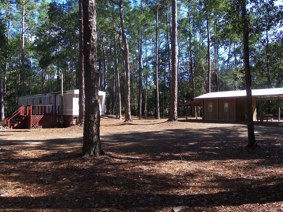 1.93 acre rectangular lot bordered by 3 roads and 5 minutes to Steinhatchee River. This property has city water and a well and is high and dry. There is a single wide mobile home with 3 bedrooms and 1 bath. It has a porch on front and back. The property includes refrigerator, stove, microwave. The home is move in condition. There is also an exterior building with has a carport on each end with water and electric. This home would make a great camp or could put a beautiful house here.