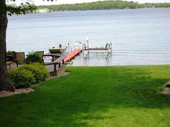 Spotless is the impression when you walk through the door. This has to be one of the best and well maintained lake homes around. Absolutely stunning lake views across the entire lake. 52 ft of pristine lakefront with seawall and great swim beach that has a gradual decent. Main level bedroom and bath. Large open dormer style upper bedroom that could be made into 2 bedrooms very easily. All natural wood work and natural wood floors on the upper level. Also there is a back lot with a 1 car detached garage with an upper loft that has a workshop and storage. This offers extra parking as well. All of this and its on a level lot, plus the home comes totaly furnished right down to the pots & pans, dishes linens etc + a Toro mulching mower. Some personal wall hangings and a couple bed spreads upstairs are reserved. Dont wait and miss out on this cutiecome see for yourself.