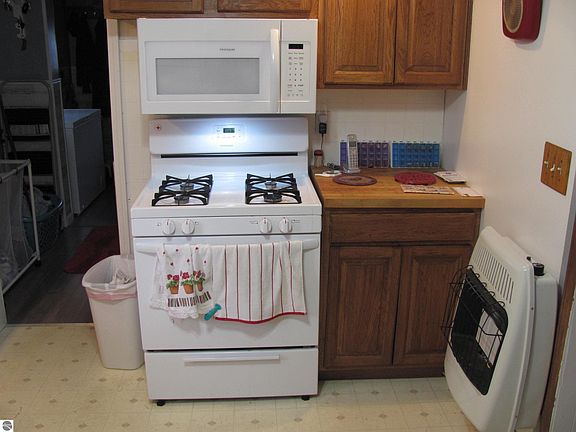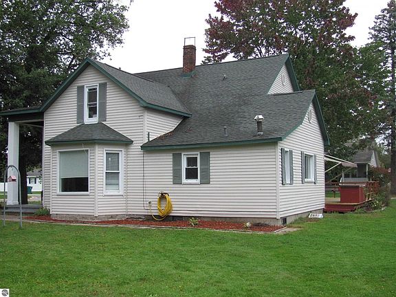 This updated home is located in a quiet neighborhood, a short distance from Tawas Bay and the downtown district. The house has 3 bedrooms with a partially finished 18 x15ft room that could easily be a 4th bedroom, currently used for a home theater. The home has been given a modern makeover without sacrificing the charm. The main floor is open with a large living room has newer carpet and boasts a gas fireplace/stove to keep you toasty during the winter months. Kitchen, dining and laundry all have laminate flooring. Storage, storage and more storage. Every bedroom has large closets, big windows and lots of floor space. The upstairs bedroom is almost a master bedroom suite, has a dream walk in closet, an exorcise area and a full bathroom. One downstairs bedroom has a private bath. The home is situated on a corner lot with a large deck with new planking and retractable awning. A new single car garage, and a second detached garage, large storage shed, fire pit and fruit trees on the corner lot. Some other updates include: roof in 2015, water heater in 2016, furnace upgrades in 2016, garage in 2023. All appliances including a chest freezer and 60" TV stay, except the 2 portable AC units.