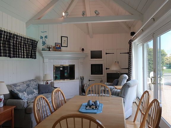Awesome views of the ocean and Hall's Creek. Experience Cape Cod at it's finest location. The ocean beach is deeded and it is right here! Enjoy the tradition of spending summers and vacations at Seaside Park entertaining family and friends this summer! Immediate occupancy available. There is plenty of space for guests with 2 bedrooms on the first level and 2 on the second level. There are 3 full bathrooms. Master bedroom could be on either level. The favorite bedroom has walls of windows and French doors to a deck perched above the trees with glistening ocean views. Watch the ferries and kayakers go by. Smell the salty air and catch the cool ocean breezes. There is a wonderful swimming pool and 1st level deck with hot tub viewing Creek & abundant birdlife. Paradise!