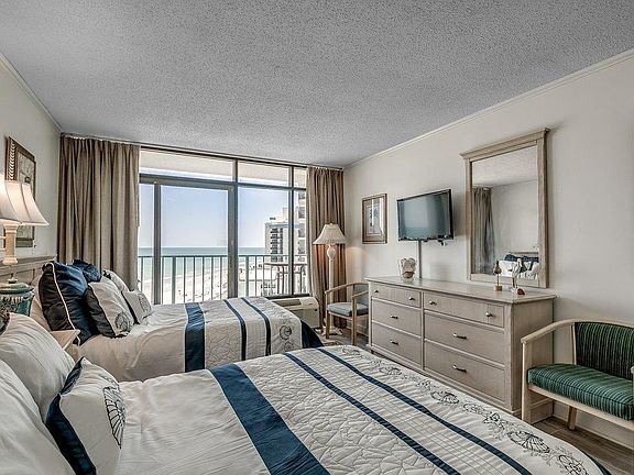 Unbelievable sunrises and Atlantic Ocean views come with this exceptional opportunity to own a 2-bedroom, 2-bath lockout unit in Myrtle Beachs Sand Dunes Resort. This condo is immaculate and has never been rented by the sellers. The new owners will be in close proximity to everything, from shopping, restaurants, amusement parks to just steps from the beach. The kitchen has gray and brown flex Giallo Ornamental granite countertops, square tiled backsplash and upgraded cabinet doors. Crown molding is in the master bedroom, which has a pair of queen size beds. The master bath has a dual sink and vanity. The lockout efficiency has a mini fridge with a dry bar and two queen beds. Additional features are distressed vintage gray luxury plank flooring throughout the condo, private owners closet and a new full size Maytag front-load washer and dryer. Sand Dunes Resort amenities include the indoor/outdoor pools, lazy rivers, Sands Water Park, fitness room, arcade, Oceanside 74 Restaurant & Lounge, mini golf, The Dunes Gift Shop, and much more. This resort is located centrally in Myrtle Beach on the North end of the beach giving a short drive to the Boardwalk, Skywheel, Broadway at the Beach, entertainment, restaurants, and shopping