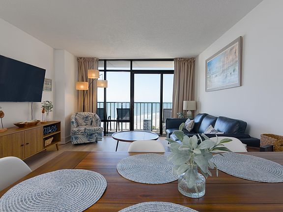 A rare opportunity to own your own piece of paradise. A million dollar views can be seen from this gorgeous lockout unit from 11th floor of this tastefully decorated and recently renovated condo. This condo is located in one of the most desirable Sand Dunes Resort oceanfront buildings. The unit comes fully furnished with fully equipped kitchen and quartz countertops, porcelain tile backsplash, soft close cabinets, stainless steel appliances, cooktop, convection microwave, Keurig coffee maker, washer and dryer, Carrera marble countertops in the bathrooms, the only unit with kitchenettes in the second unit, and two private balconies. Great investment opportunity as each side can be rented out together or individually. Sand Dunes Resort offers too many amenities to mention: indoor & outdoor pools, a Fun Zone, hot tubs, lazy river, a spa, fitness club, and on -site oceanfront restaurant, a store, and a water park. Do not wait to call this “Carolina Beach”condo yours.