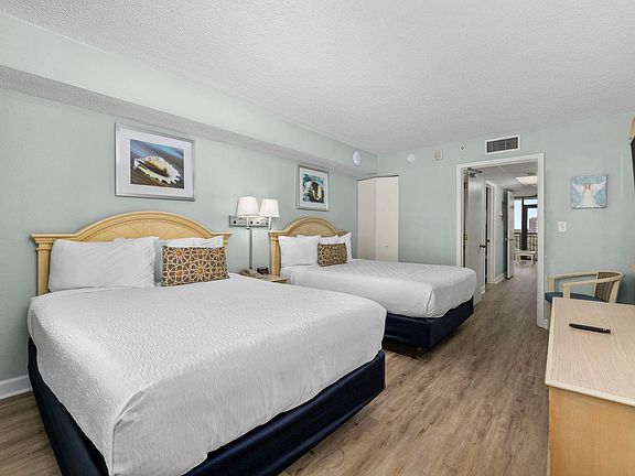 Location! Location! Location! This 1 bedroom, 1 bath, furnished Oceanview unit is a must see! Located in the highly desirable Grande Shores Resort. Unit features New 2022 Luxury Vinyl Plank flooring, granite countertops tiled backsplash. Bedroom features two queen beds, full bath with updated vanity hard surface vanity top. Living room features access to your 10th floor balcony with beautiful ocean views, sofa sleeper, and a Murphy bed accommodating up to 8 guests. Grande Shores Resort amenities include indoor and outdoor pools, lazy river, hot tubs, onsite dining, laundry facilities, exercise room, an oceanfront sun deck, Shoreline Cafe, and private beach access. Perfectly situated in the heart of Myrtle Beach, close the Grand Strand's finest dining, shopping, golf, entertainment, and attractions. Whether an investment or your very own vacation get-away, you won't want to miss this one!!
