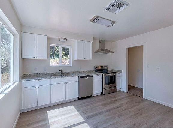 A sparkling gem! Entirely updated 2 bedroom/1 Bath cutie on .70 of an acre with fresh flooring, paint...most everything! Lovely sized living room offers ceiling fan/light, picture window, brick fireplace with electric heater insert for instant ambiance, vinyl plank flooring throughout most of home. Bright Kitchen with dining and fantastic light streams through the large window and views of the backyard. New Stainless stove and dishwasher...New Washer and Dryer... New tub/shower combo...New HVAC and Septic. TL#4400 is a .55acre with shared drain field & is spacious enough for RV parking or build a shop/garage & is being sold with this home on .15acre. Very Clean, just move in! Ready for your touches and landscape design!