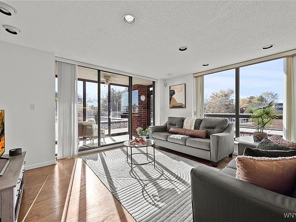 Don't miss 201 Admirals Walk Circle, located in Buffalo’s desirable Waterfront Village community. This spacious 1-bedroom, 2-full-bath condo combines comfort, convenience, and potential. The open-concept layout offers flexibility for an additional bedroom with minor modifications, while hardwood floors flow throughout the main living areas. A fully stainless steel applianced kitchen w/solid surface countertops, in-unit washer and dryer, and sunroom with easy access to the terrace add to the everyday ease of living. Plenty of closet storage space and the primary en-suite boasts a large walk-in closet and updated vanity and tile flooring in the bathroom. The Admirals Walk building offers a truly elevated lifestyle with premium amenities, including a fitness center, sauna, and secure parking—all within a well-maintained, luxury setting. Enjoy partial water views during the cooler months and easy access to Buffalo’s waterfront paths, downtown restaurants, and entertainment. With some thoughtful updates, this residence can become your ideal retreat in one of the city’s most sought-after locations. Your house hunting search might end right here!