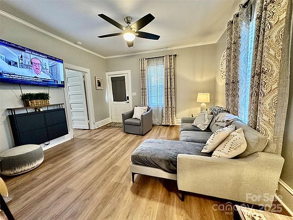 Charming bungalow with rocking chair front porch in the heart of Kannapolis. Walkable to Kannapolis Social District, Stadium, Theatre, breweries, coffee shops, shopping, boutiques, restaurants and more. This charming home has lot of upgrades. Features a updated kitchen with quartz counter tops, white cabinetry, kitchen island, stainless appliances, coffee nook and recessed lighting. Oversized bedrooms with lots of storage and closet space. Updated primary bathroom. Kitchen opens up to Spacious Dining Room and Living Room. Relax on your deck overlooking the fenced, private backyard. HVAC replaced less than 2 years ago. 2" blinds and tons of updates. Detatched garage. Basement for storage. Convenient to I-85 and Hwy 29. This is a true gem in the heart of Kannapolis.
