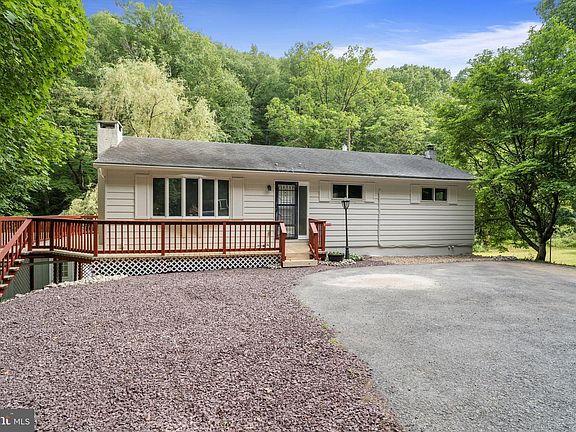 Like new and ready for you! This beautifully renovated ranch-style home is nestled on 3.9 park-like acres with a peaceful pond, creek, and gazebo, offering the perfect blend of privacy and nature. The brand new deck provides a serene space to relax or entertain. Inside, the main level boasts a spacious living room, dining area, kitchen, three bedrooms, and a full bathroom. The fully finished lower level features a cozy family room with wood-burning fireplace, laundry area, second full bathroom, garage access, and plenty of storage. Recent upgrades include a brand-new kitchen and bathrooms, new flooring, fixtures, paint, deck, and more! Conveniently located for commuters yet tucked away from it all! Seller is open to selling the property with a home warranty transferable to the buyer!