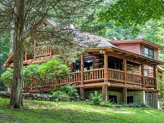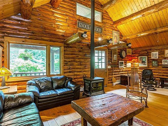 Rarely do you find an amazing secluded oasis complete with swimmable pond and tranquility, just minutes from Tierney Preserve for great hiking. A long pine tree lined driveway leads to this custom built log home which is enhanced by the wraparound porch which overlooks the pond with it's own waterwheel. It is the ultimate getaway for full time vacation every day! Open floor plan with vaulted ceiling, yet feels warm and cozy with the wood stove. The updated kitchen opens on to the family room. Two Picture windows in main living space to view nature and the stunning pond. Fire Pit, Dock. The walkout lower level offers additional space for guests or family room. Easy access to great dining and area shopping!