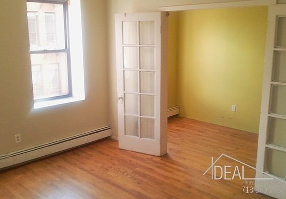 Gorgeous 2.5BR on the fourth floor of a well-maintained pre-war walk-up townhouse in prime Fort Greene. Beautifully flowing open kitchen layout with a breakfast counter. The 1/2 bedroom is connected to the living room through a set of lovely French doors, and could be your home office, walk-in closet, nursery... you choose! The two bedrooms are located in the rear of the residence. In addition, there is storage space on the landing, and laundry in the basement. Tremendously convenient with 2/3/4/5/C/G trains nearby, and excellent dining options right around the corner on Fulton Street. Close to the Atlantic Terminal trains, Fort Greene Park, and the world-renowned BAM. Heat and hot water are included in rent, and pets considered on approval. Call today...!