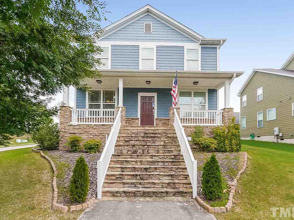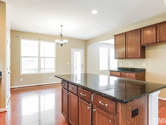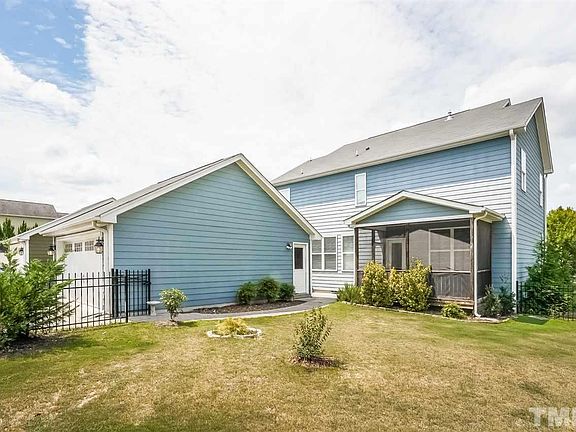 Built in 2011, this Wake Forest two-story corner home offers a deck, hardwood flooring, a fireplace, granite kitchen and master bath countertops, stainless steel appliances, and a two-car garage.