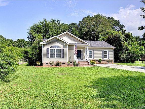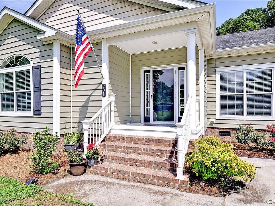 Experience single level living on a .86 acre lot with no HOA, allowing ample space for your boat, RV, and other recreational vehicles. This meticulously maintained home offers convenient access to nearby military installations, Norfolk, and Richmond. Step inside to discover a beautifully constructed residence featuring maintenance free luxury vinyl plank flooring, premium light fixtures, crown molding, and stylish upgrades. The spacious eat in kitchen boasts inviting granite countertops and a central island for culinary enthusiasts. The open concept design seamlessly connects the living room and dining room, complemented by a charming wood burning fireplace that adds both warmth and character. Entertain guests on the adjacent deck, overlooking the expansive backyard. The generously sized primary bedroom showcases a luxurious spa like bath and a walk in closet that must be seen to be appreciated. Additional highlights include a sitting room, two more bedrooms, and a convenient laundry room. A new HVAC system was installed in 2023. Don't delay, this exceptional home won't stay on the market for long.