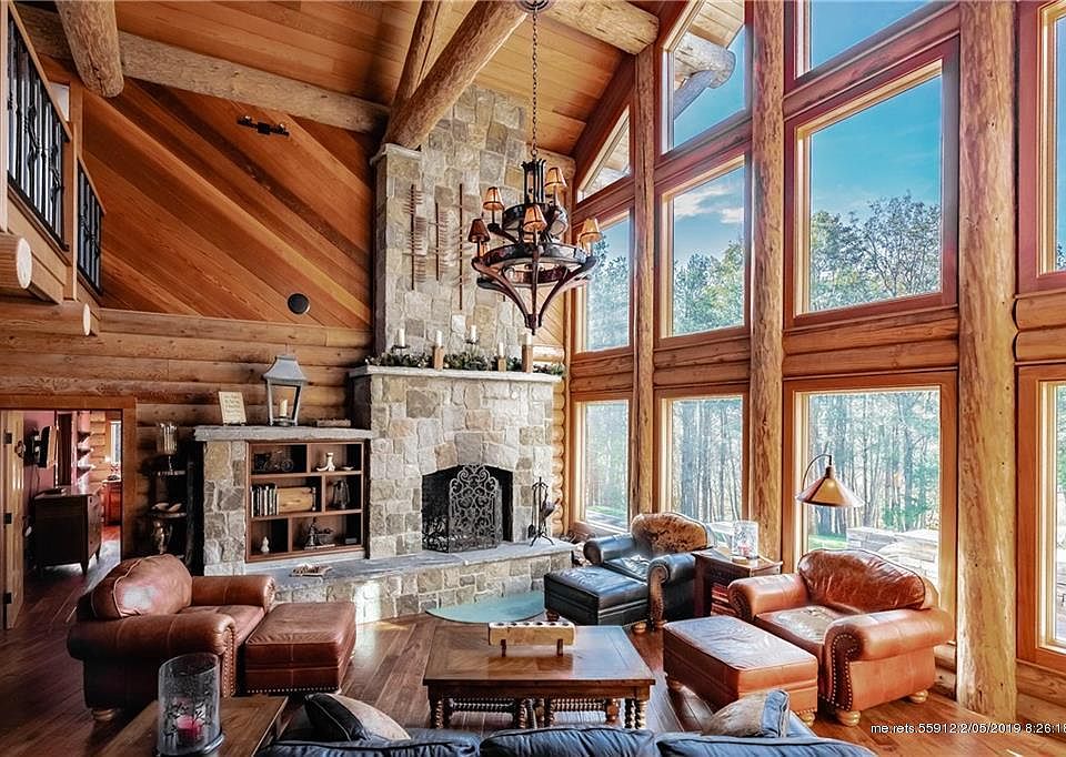 Custom built Western Red Cedar. 4 master bath suites. Gourmet kitchen, hand scraped hickory floors and mahogany trim throughout. Office and loft on second level. Lower level has media room, full wet bar, bath, fully equipped gym and sauna. Hot tub on the deck that runs the length of the home. Custom stone patio. Radiant heat. Sound system. This home was featured in Maine Home Design and Log Home Living.